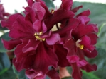 Крупные кроваво-сливовые полумахровые звезды со звездчатым белым