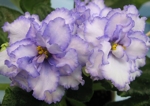 Крупные махровые голубые округлые цветы с четкой белой волнистой
