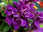 Пестролистник. Крупные ярко-синие махровые цветы с нежно-розовым