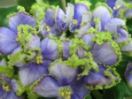 рисунком- сеточкой и ярко-синей каймой. Светло-зеленая листва. |
