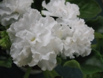 Огромные белоснежные махровые волнистые цветы. Зеленые листья. |